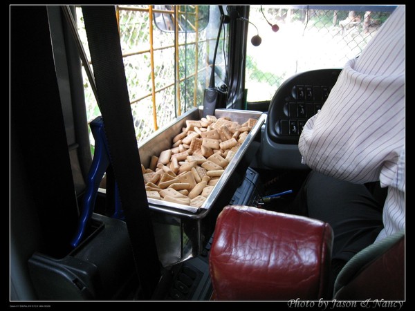 司機旁的餅干是等一下要餵熊的唷 ,沒想到熊也喜歡吃零食